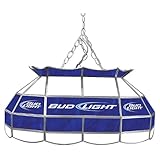 Trademark Bud Light 28 inch Stained Glass Pool Table Light is an incredibly high quality lighting fixture. Use for lighting your Billiard Table, Kitchen Table or even your Dining Room Table. Features: Handmade with stained glass Brass channel Pull chain on,off switch 10 foot power cord (110 volt) with 3 prong plug Hanging hardware included 3 feet of hanging chain included Three bulb style (bulbs not included, max 60 watt per bulb ) Specifications: Overall Dimensions: 14" H x 16" W x 28" D Weight: 27 lbs Handmade with stained glass. Brass channel pull chain on/off switch. 10 foot power cord (110 volt) with 3 prong plug. Two-bulb style (bulbs not included, max 60 watt per bulb.) Ideal for bars, game rooms and kitchens!